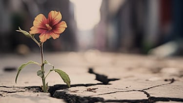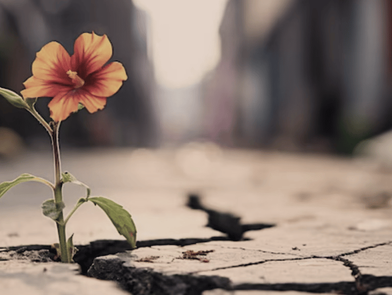 I am enamored by flowers growing through concrete. I sometimes pause to look or take a picture when this happens in unlikely places. The flower survives despite its difficult surroundings, finding cracks and crevices that allow it to expand and adapt to the environment. It is a perfect metaphor for the constant duality that exists in our life experience. It symbolizes resilience, adaptability, and the wildly underestimated power of our WILL when faced with adversity. I find the contrast of this beautiful living being in harsh surroundings, yet still striving to reach its potential, very inspiring. I appreciate its truth, as it mirrors the stories I see in my work with people every day.